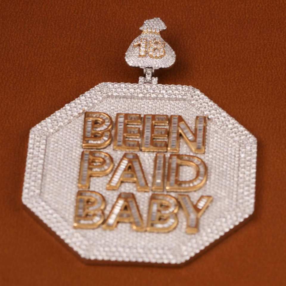 Luxurious 925 Sterling Silver 14K Gold Plated Custom Moissanite Iced Hip-Hop Style Men's Letter Shape Pendant Charms
