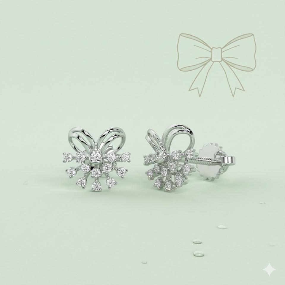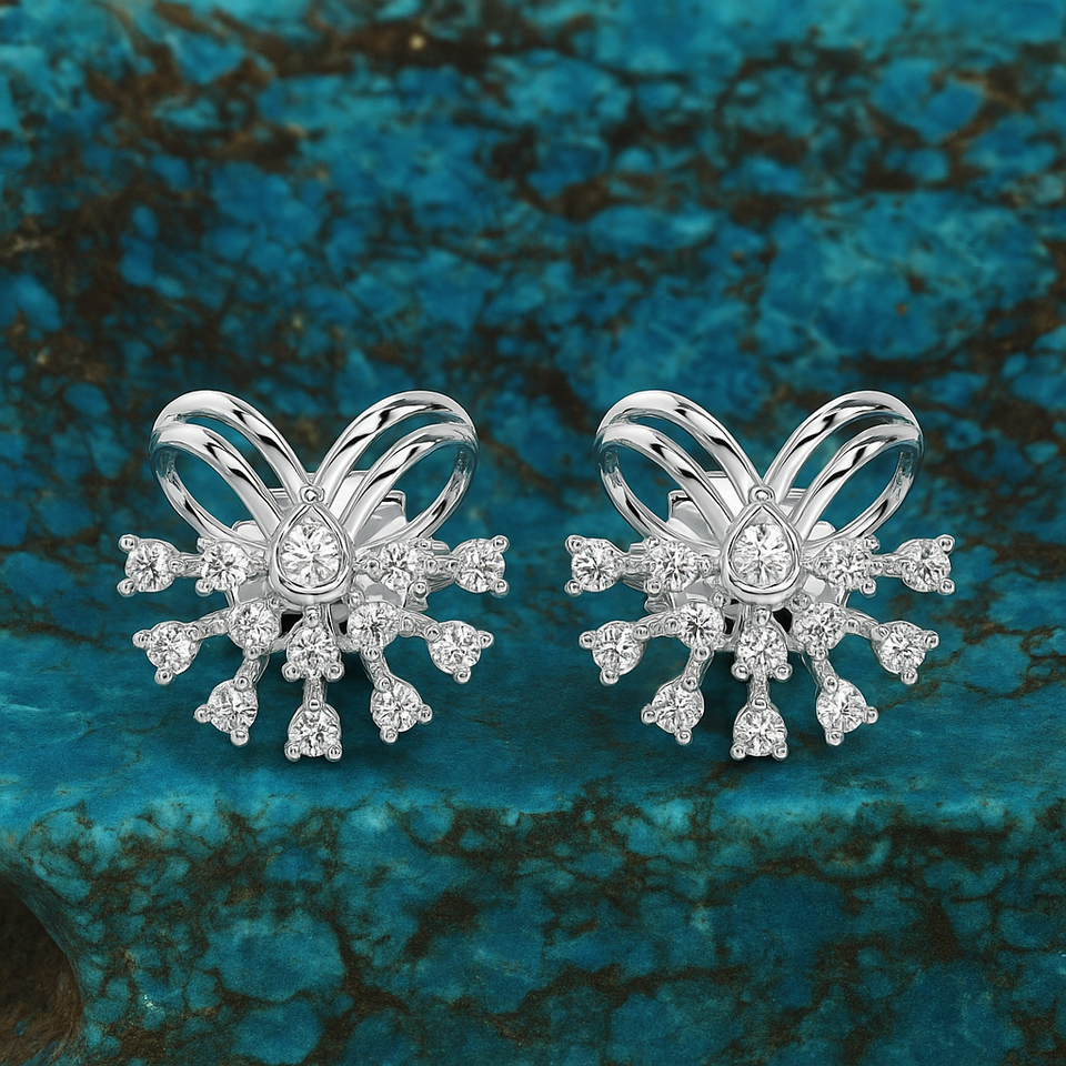 Luxurious 925 Sterling Silver Bow Burst Stud Earrings Elegant Snowflake Design Zircon Diamond Pave Fine Jewelry for Wedding