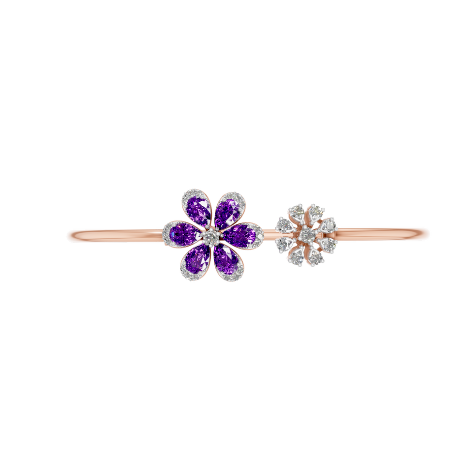 Luxurious 925 Sterling Silver Rhodium Plated Vintage Bangle Bracelet Amethyst Pear VVS D Moissanite Floral Design Women's Fine