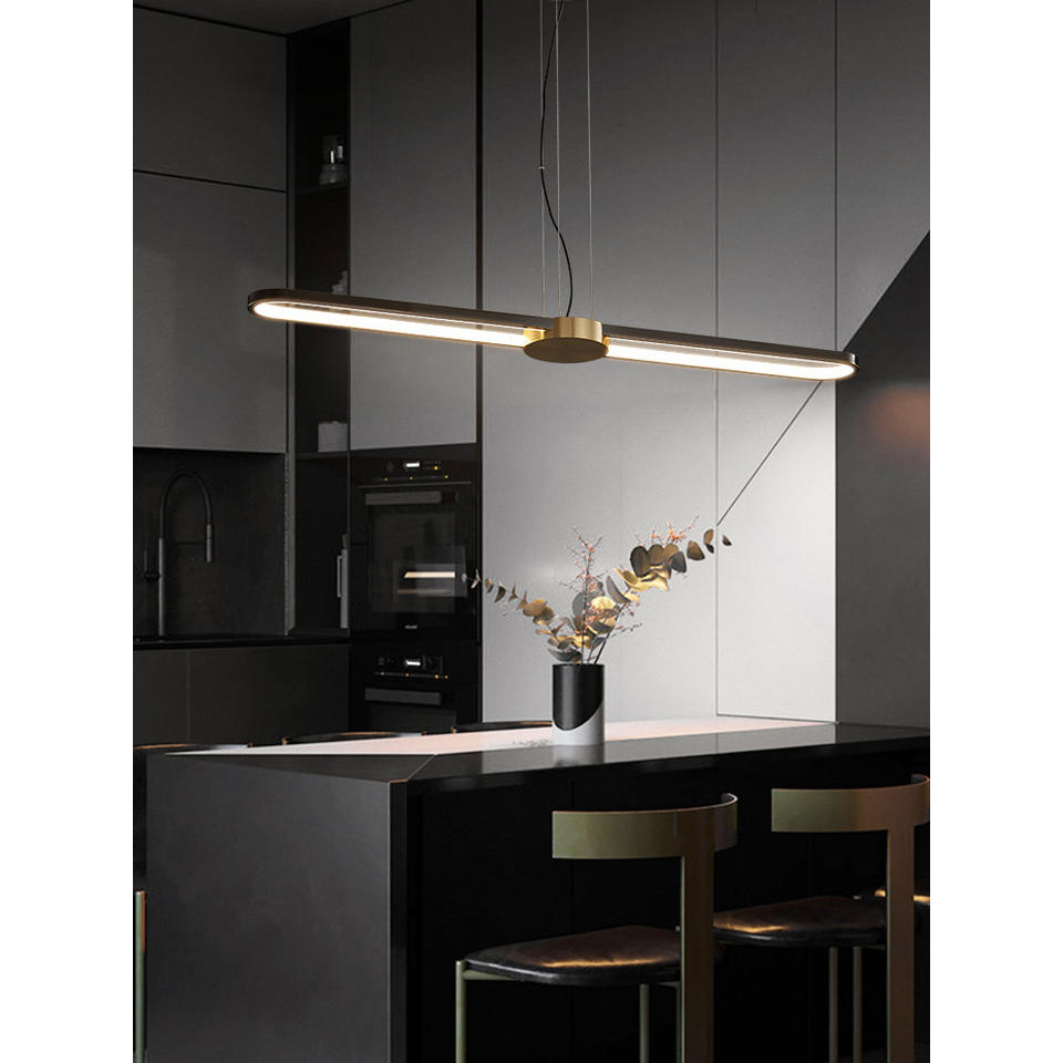Luxurious All-Copper Minimalist Modern Office Dining Room Pendant Light Grand Lighting Fixture for Dining Table Bar Counter