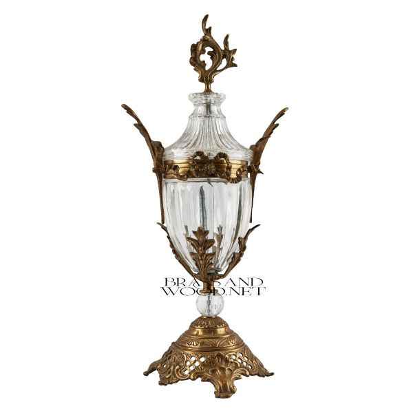 Luxurious Antique Brass Decorative Piece with Elegant Glass Design and Ornate Base for Classic Home Interiors