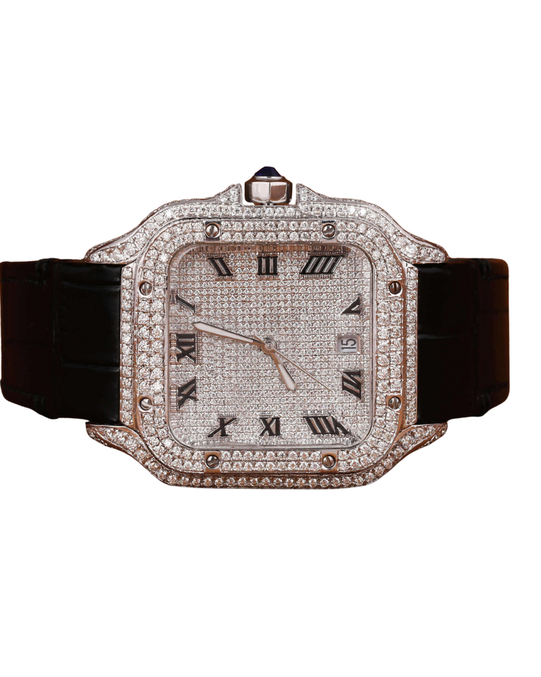 Luxurious Automatic Wrist Watch White Dial in Lather Band Iced Moissanite Studded Different Shapes Hip Hop Rapper Style