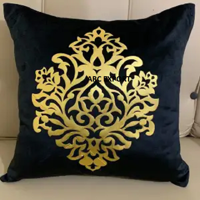 Luxurious Beaded Decorative Blue Color Cushion Gold Color Bordered Designing Cushion for Living Room Sofa Decor in Low Price