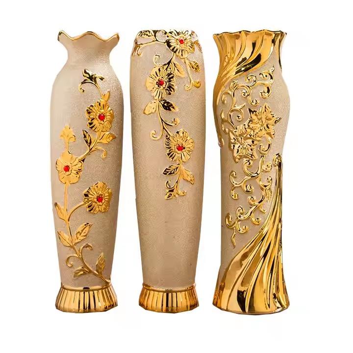 Luxurious Beautiful Ceramic Flower Vases With Some Golden Floral Accents Luxurious Quality At Wholesale Price
