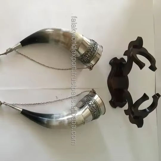 Luxurious Buffalo Drinking Horn Set With Wooden Stand and Chain Viking Drinking Horn From Falak World Export
