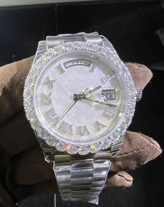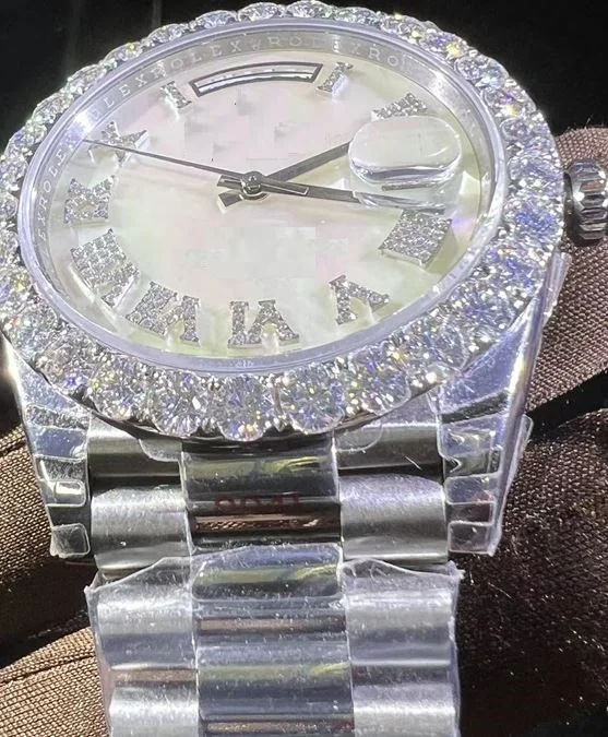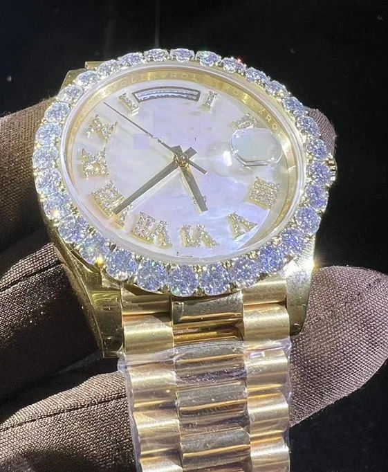 Luxurious Custom Moissanite Analog Wrist Watch Iced VVS Clarity Passes Diamond Tester High Bust Branded Fashion Business Watch