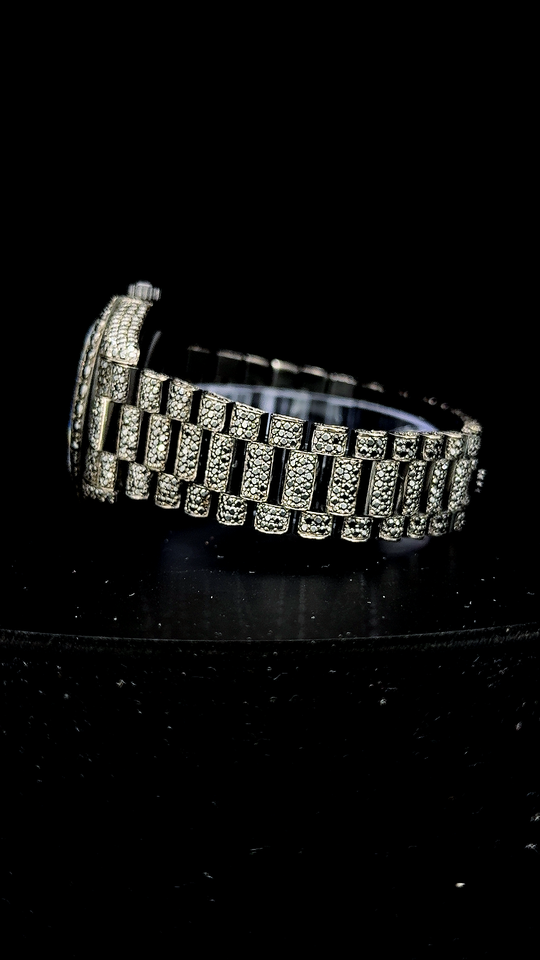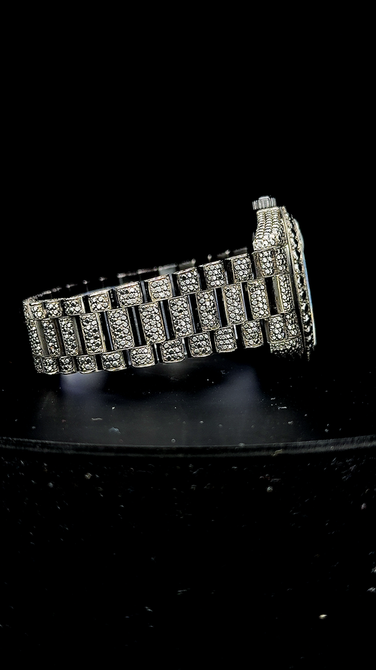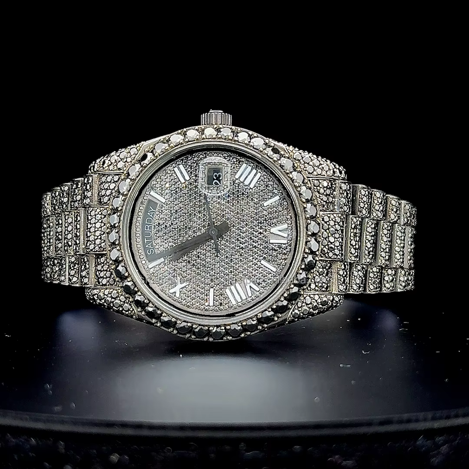 Luxurious Customized Men's Full Black Round Cut Moissanite Diamond Watch Hip Hop Rapper Automatic Wrist Luxurious Watch