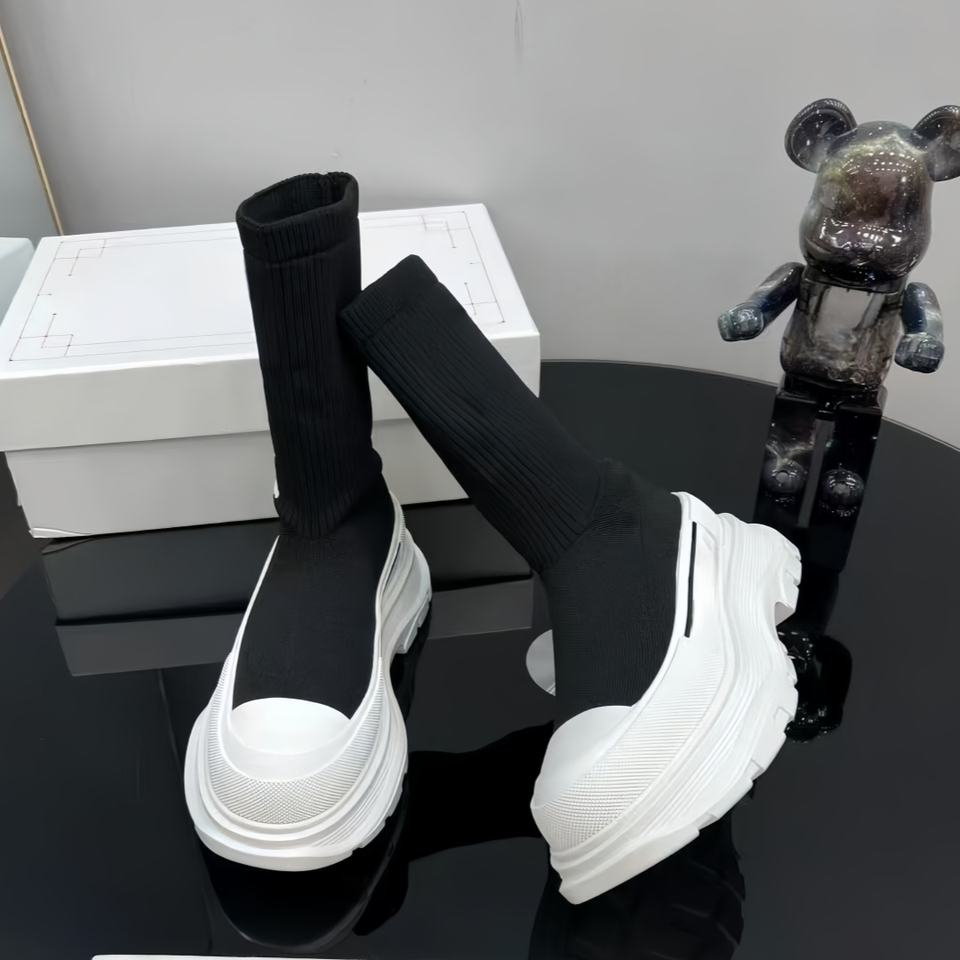 Luxurious Designer Men's Sock Shoes High quality Breathable Woman Sports Casual Walking Style Shoes High-Top Chunky Sock Boots
