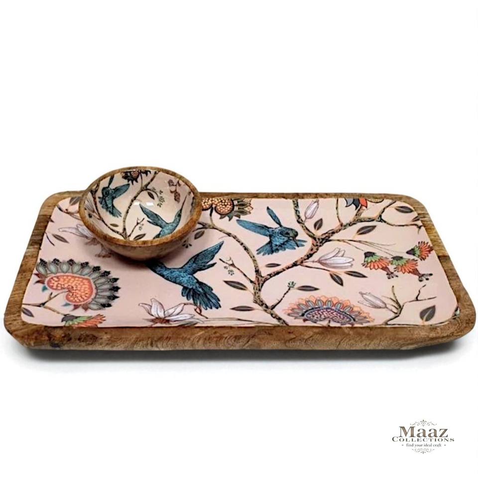Luxurious Eco-Friendly Modern for Wood Tray Bowl Set Meena Decoration Handcrafted Serving Set Indian Artisan Tableware