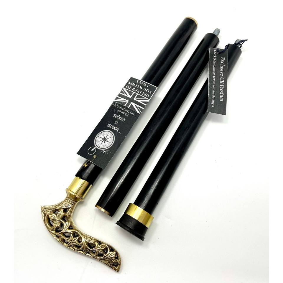 Luxurious Elegant Curved Handle Antique Design Brass Handle Stylish Hardwood Foldable Lightweight Adjustable Length Hiking Stick