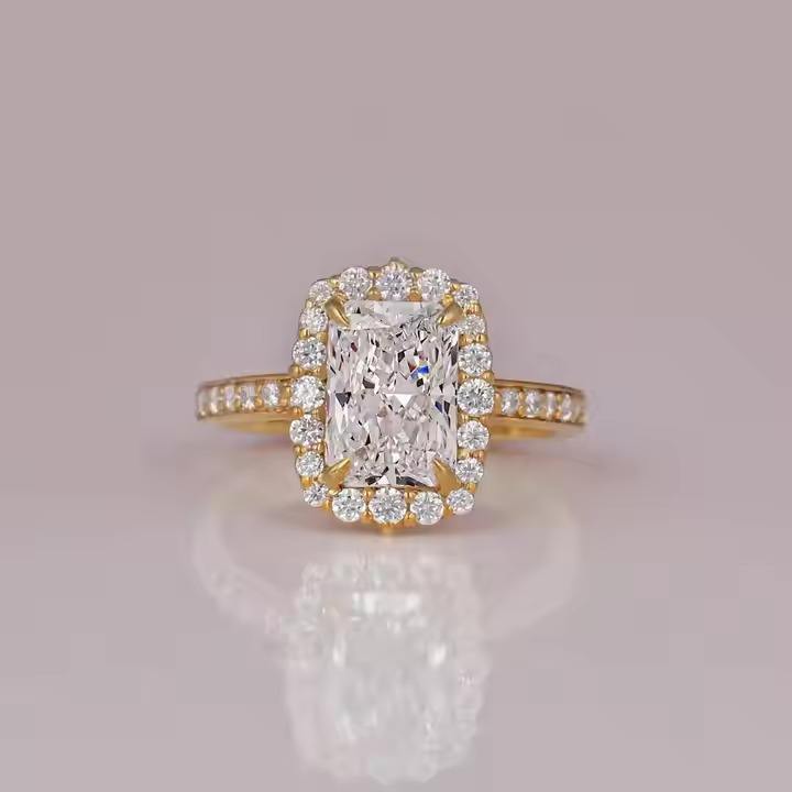Luxurious Emerald Cut Lab Grown Diamond Setting Engagement Ring 14KT Gold Plated Trendy Style Gift Ring for Women