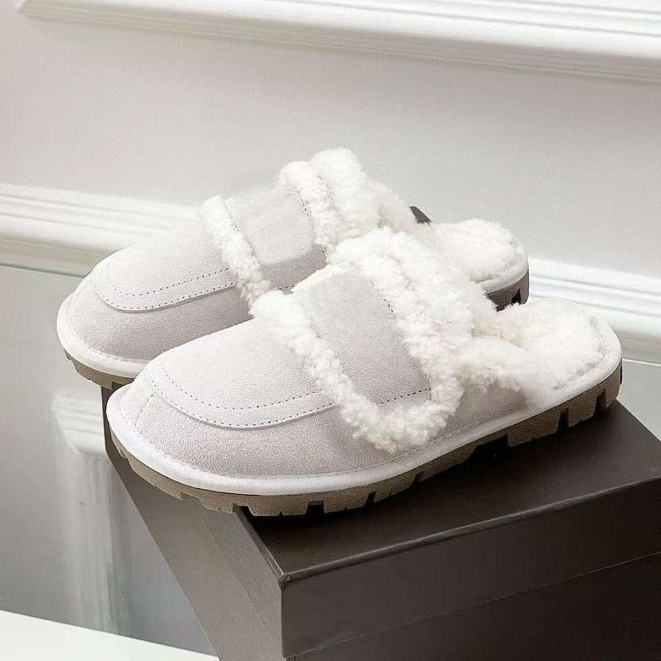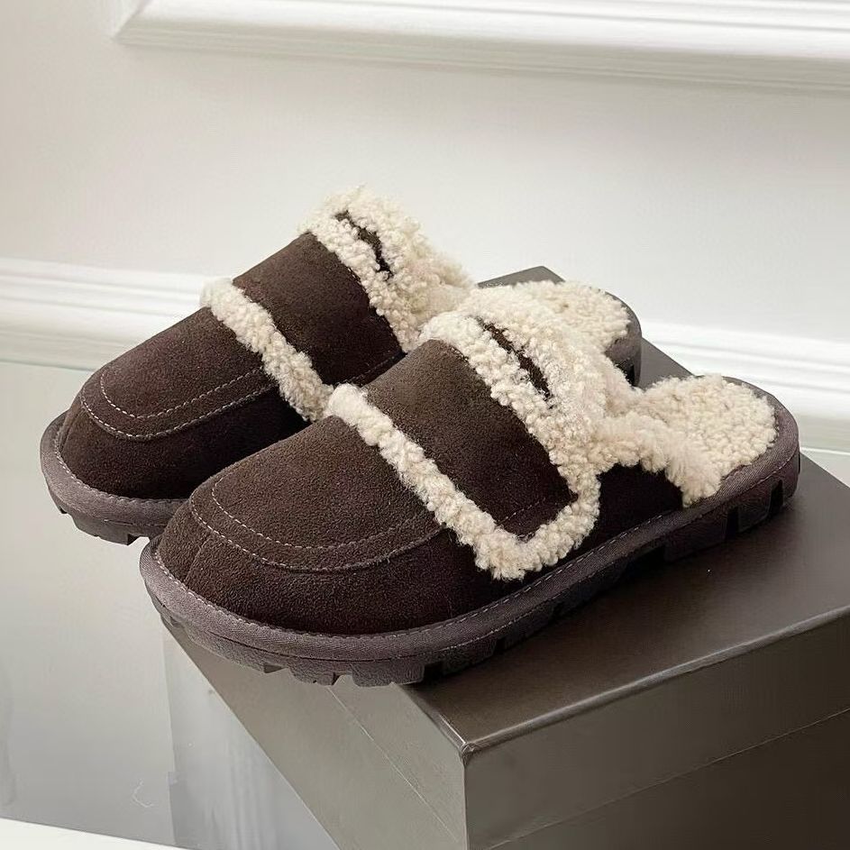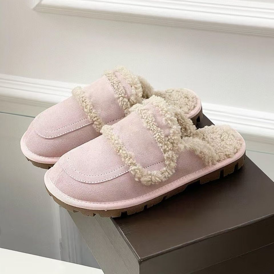 Luxurious Fall Winter Women's Wool Warm for Slippers High Quality Anti-Slip Outdoor Design Fashionable Embroidery Fluffy