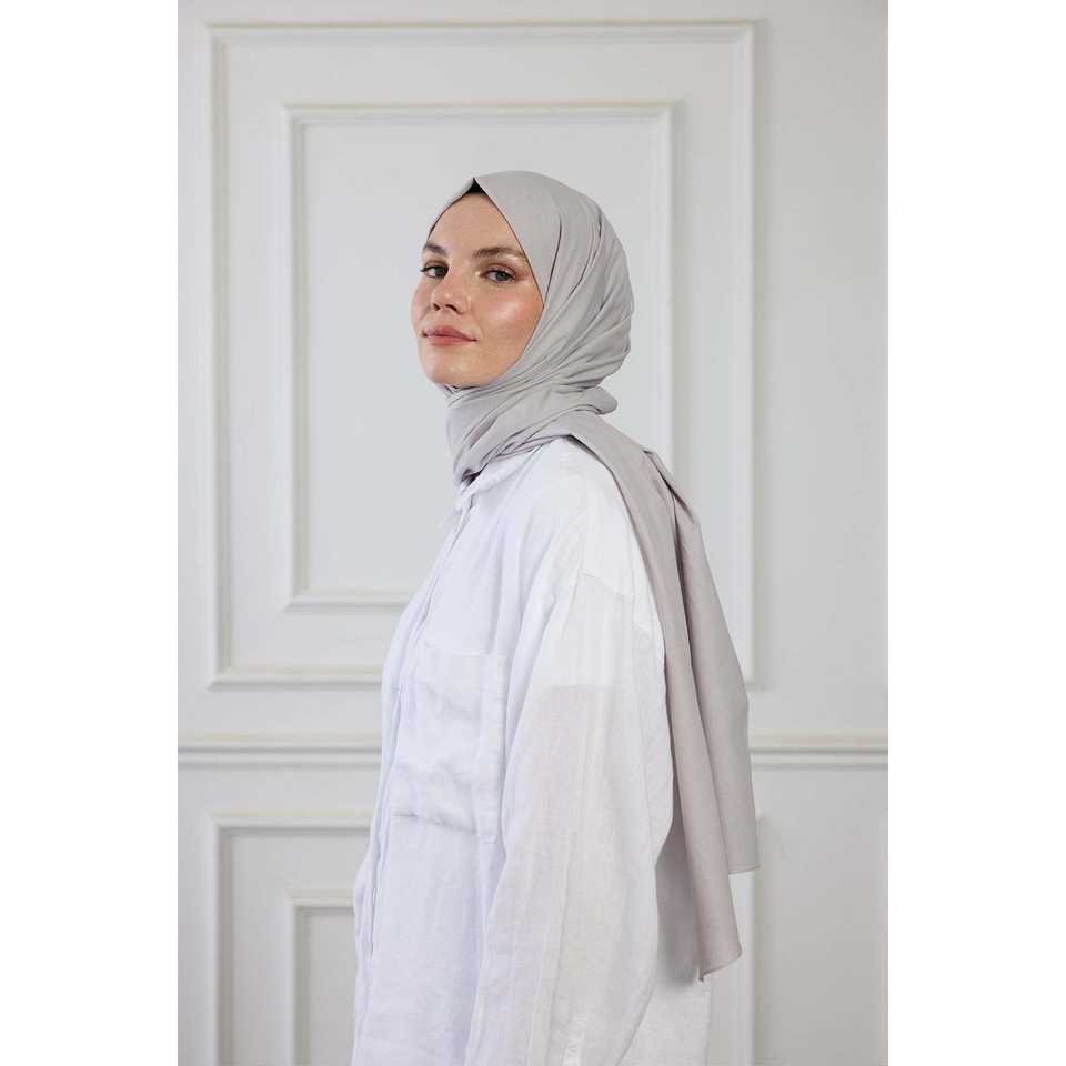 Luxurious Floral Printed Shawl Silver Grey Pure Cotton Scarf-Lightweight Breathable and Soft for Girls' Autumn Style