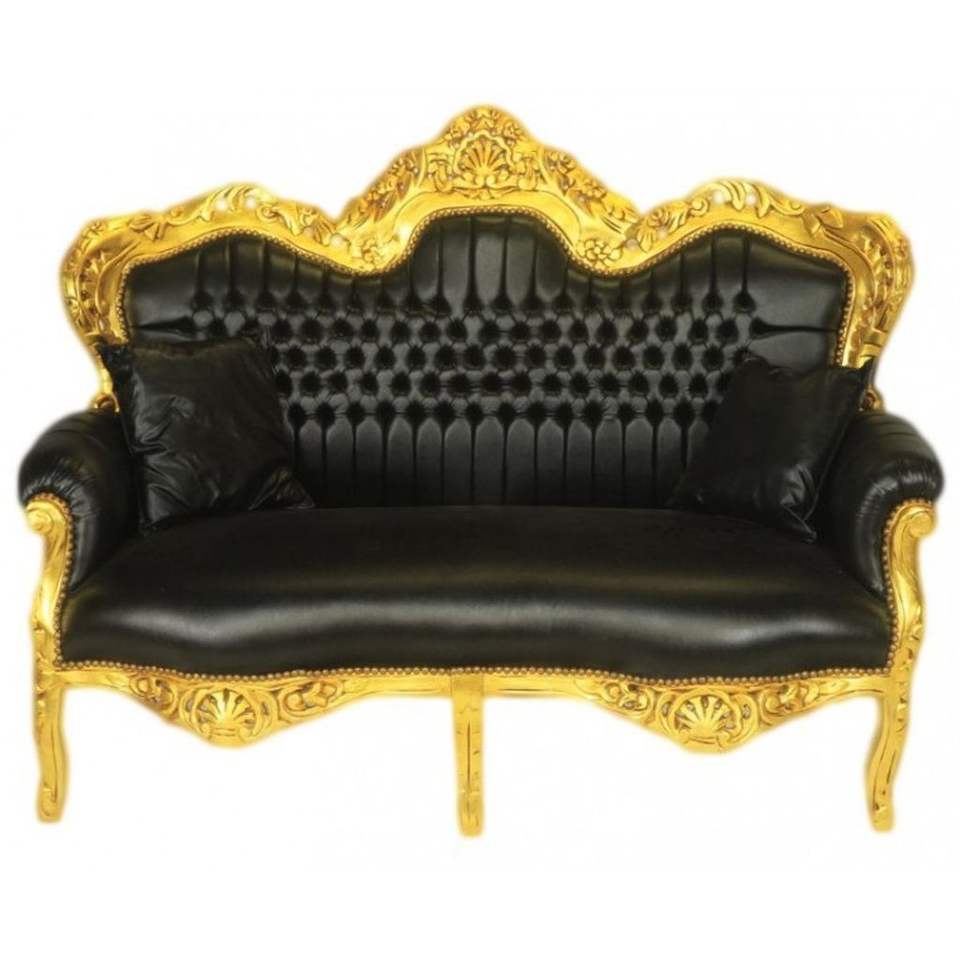 Luxurious Gold Leaf Hand-Carved Mahogany Tufted Faux Leather 2-Seater Sofa for Elegant Living Spaces