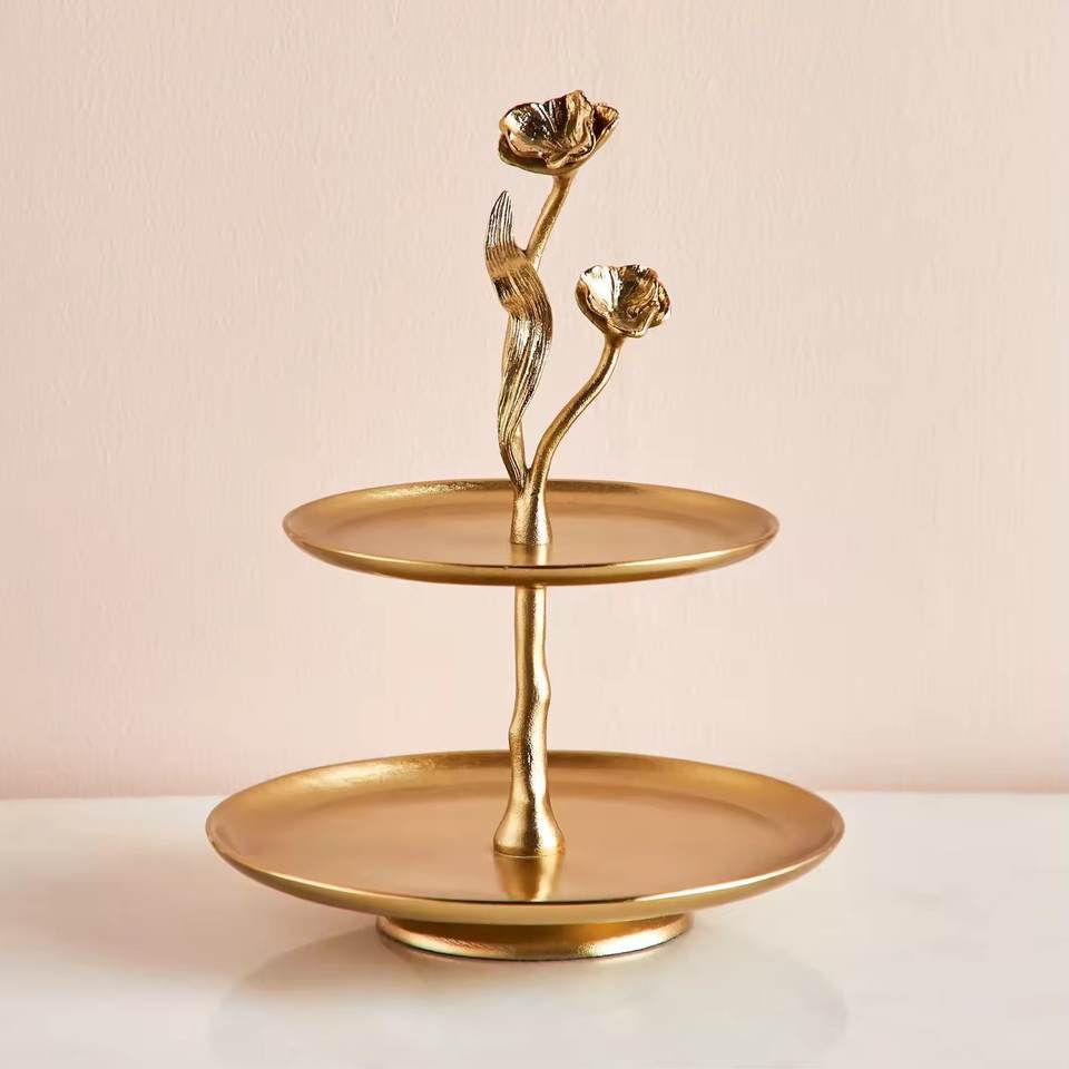 Luxurious Gold Plated Metal Cake Stand Branches Design 2 Tier for Birthday Wedding Parties Cup Cake Serving Stand