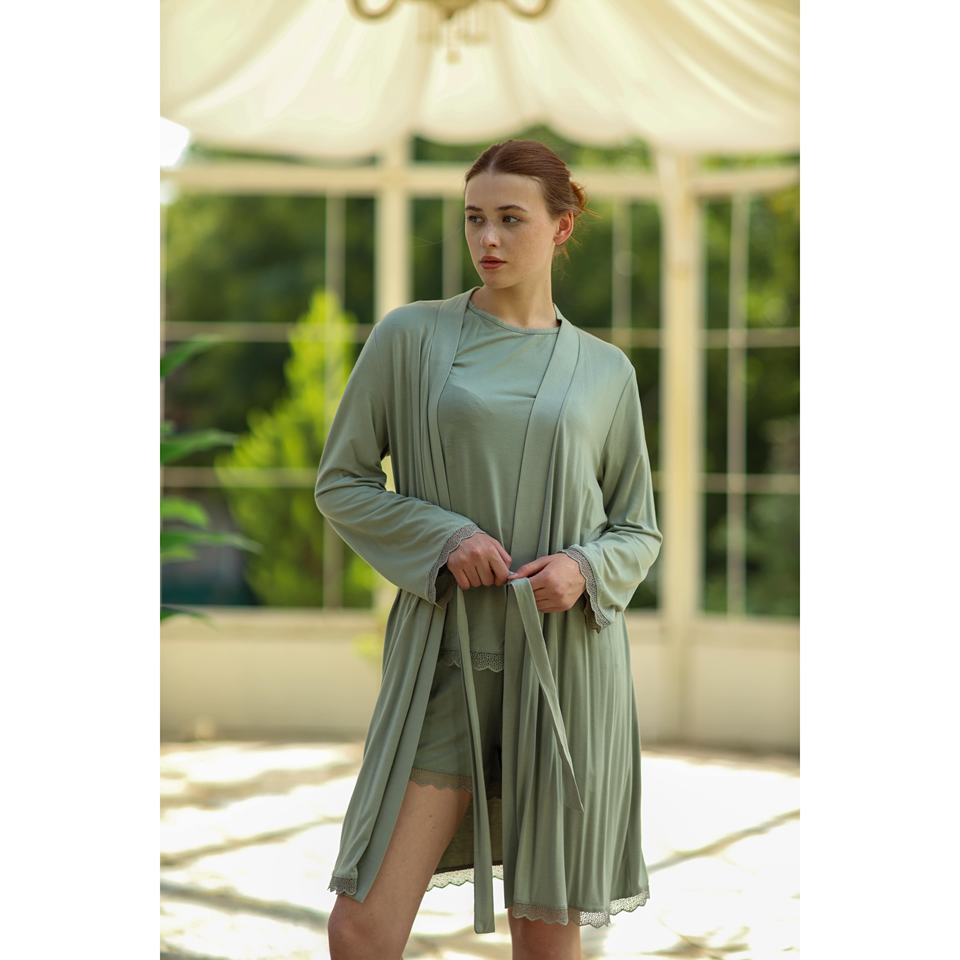 Luxurious Green 2-Piece Set XS/XS above Knee Skinny Fit Woven Top Blouse Dress with Solid Pattern Leopard Print Green Shorts