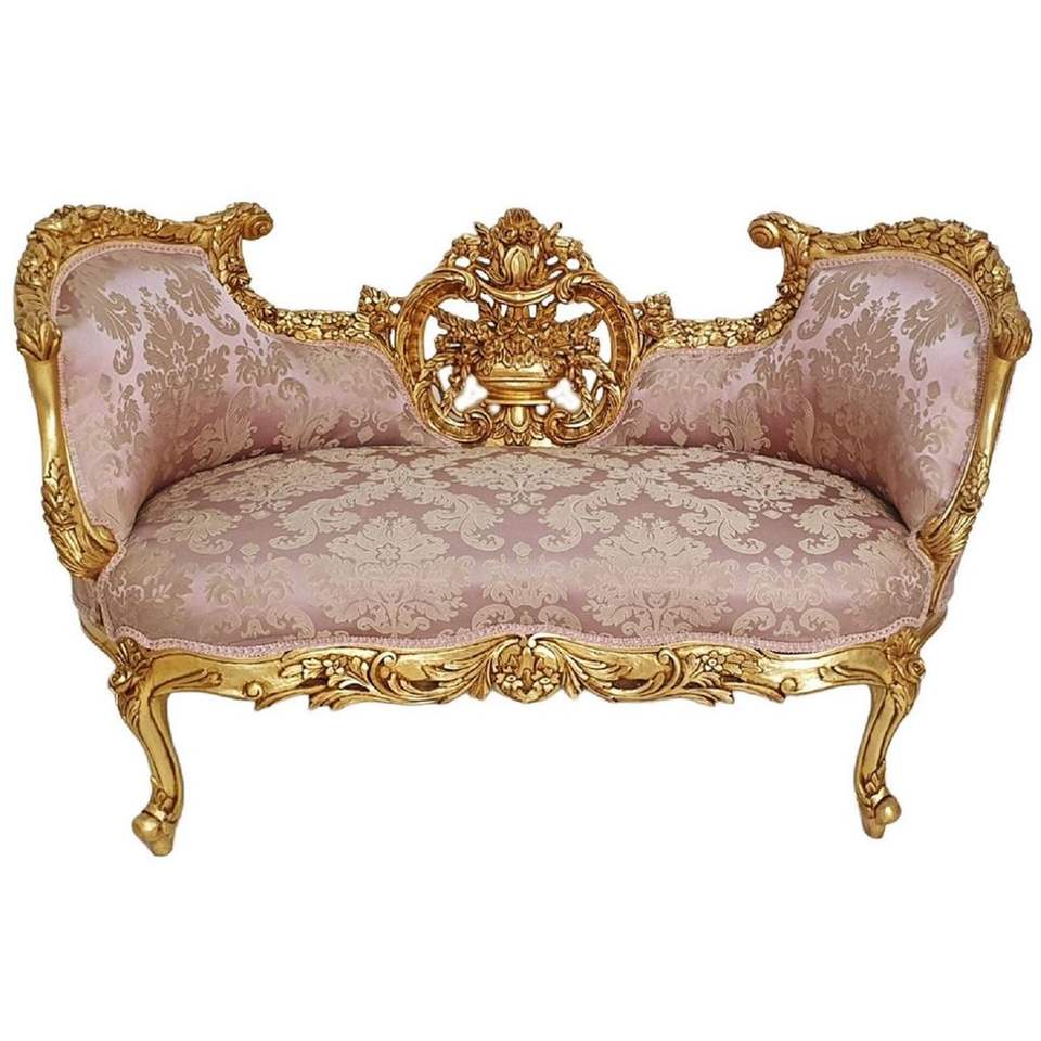 Luxurious Hand-Carved Mahogany Gold Leaf Chesterfield Two-Seater Sofa Camel Back Damask Fabric Elegant French Style for Opulent