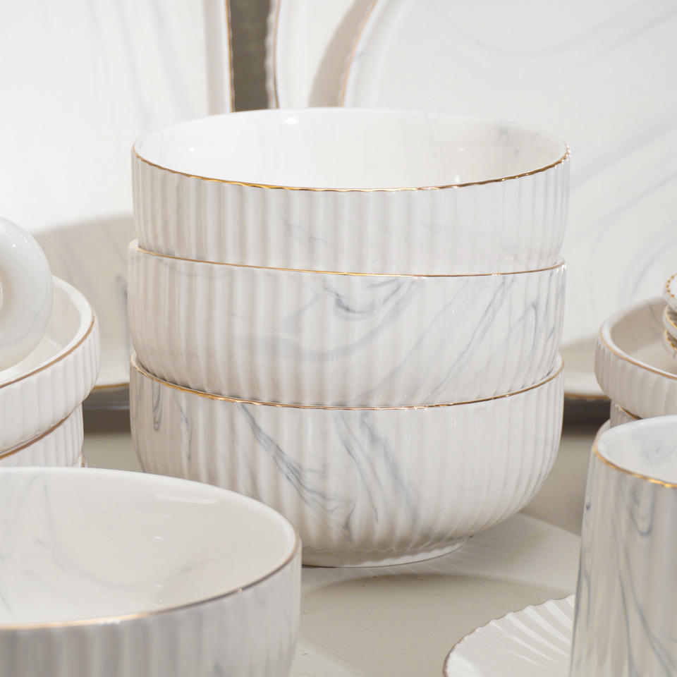 Luxurious High-End Ceramic Tableware Set Modern Marble Pattern Gold-Embossed Plate and Bowl for Gift Giving