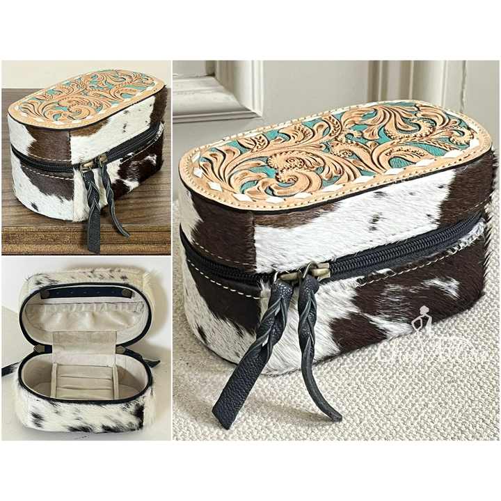 Hand Tooled Cowhide Leather Small Jewelry Case