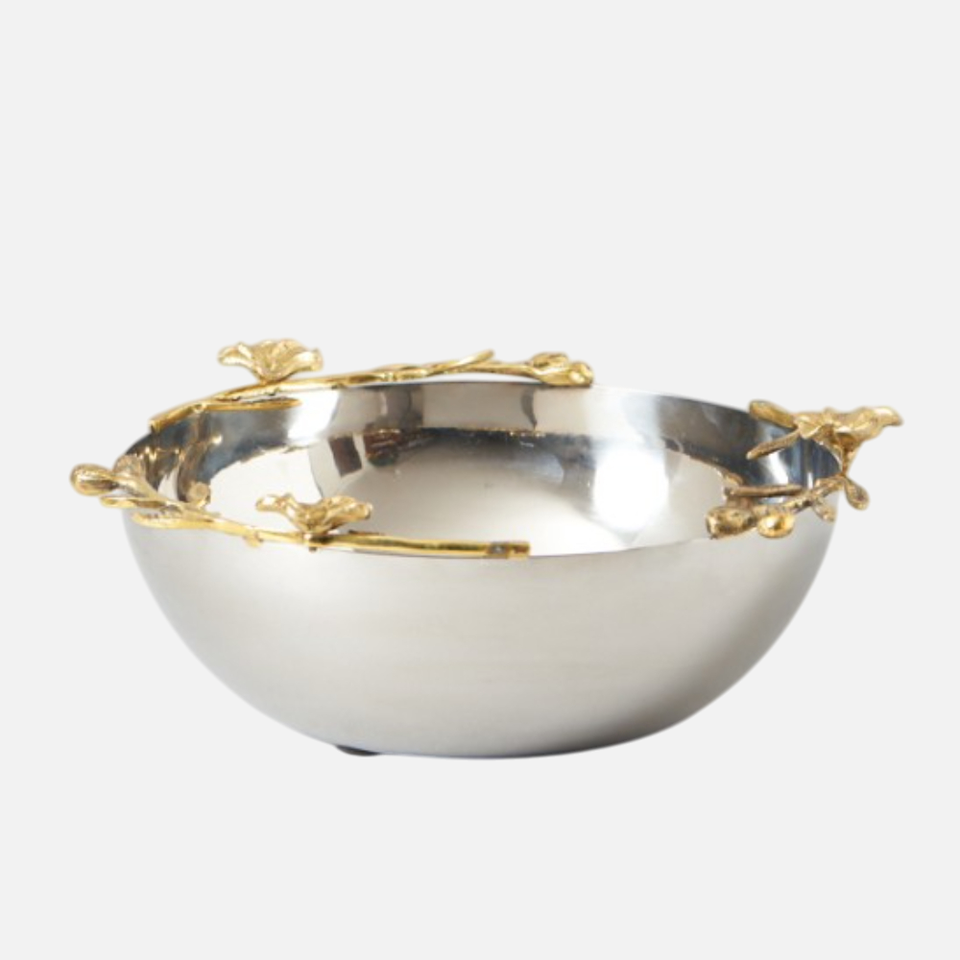 Luxurious Home Decorative Accent Made Of Metal Bowl With Gold Floral Accent For Wedding Party Food Serving Accessories