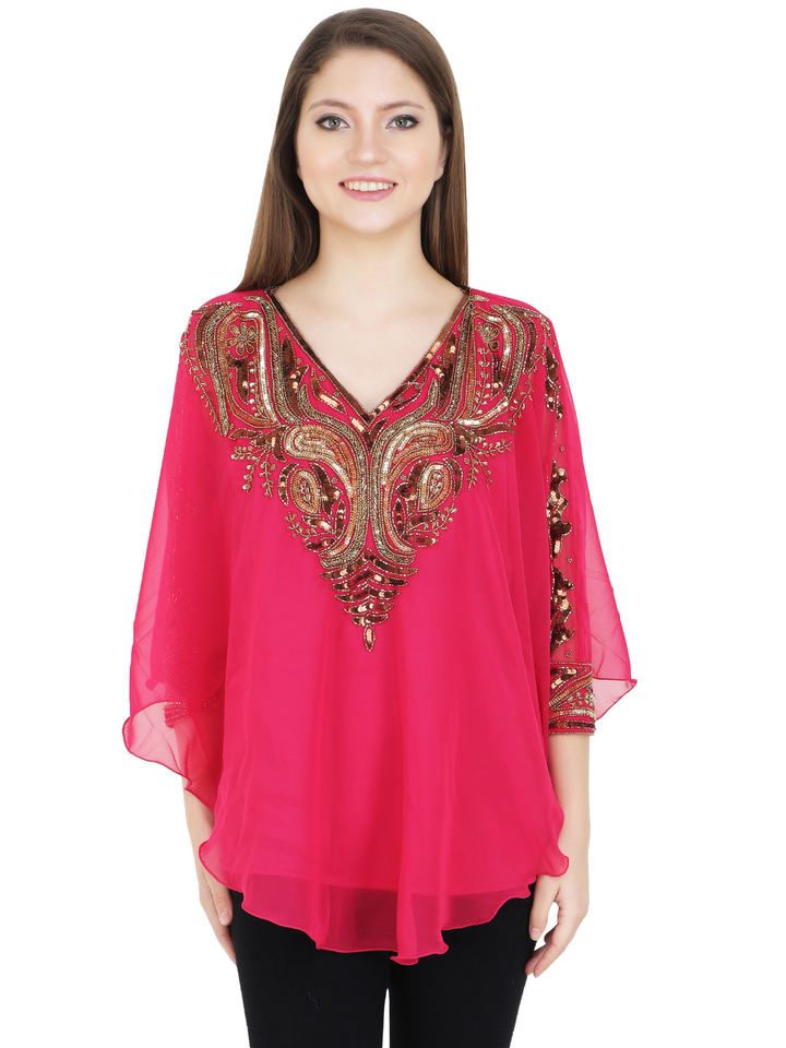 Luxurious Indian Ethnic Short Kaftan Dress Hand Embroidered Adult Woman's Party Wedding Beach Wear Free Size Made Georgette!