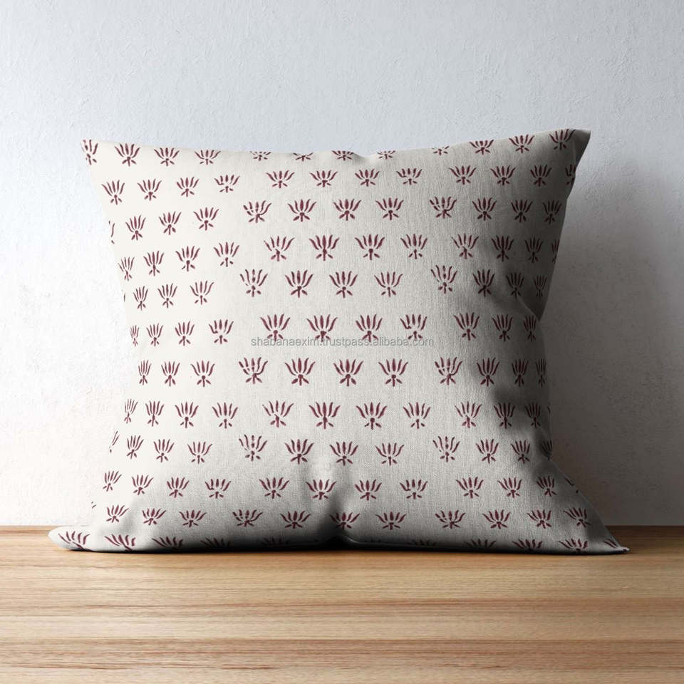 Luxurious Indigo Hand Block Print 45x45 Cushion Cover With Lotus Floral Pattern Borders for Ethnic Modern Homes Decor
