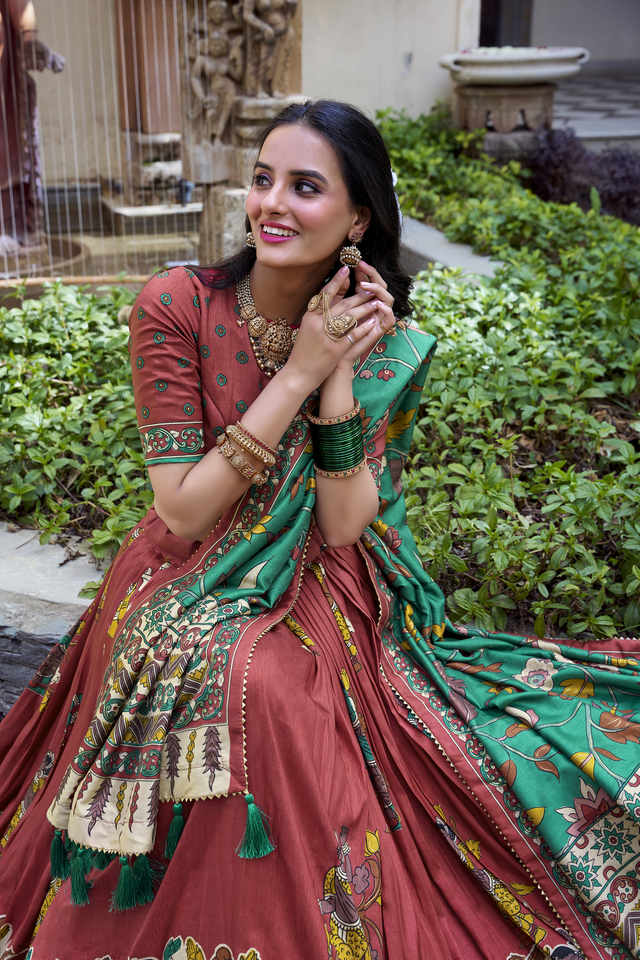 Dupatta work:Kalamkari Print With Gotta Patti Lace Border also comes with tassels
