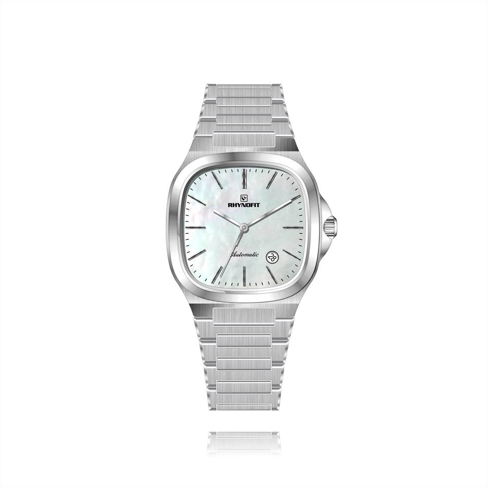 Luxurious MOP Dial Polish Bezel Brushed Texture Case NH35 Automatic Movement Genuine Leather/ Stainless Steel Band Square Watch
