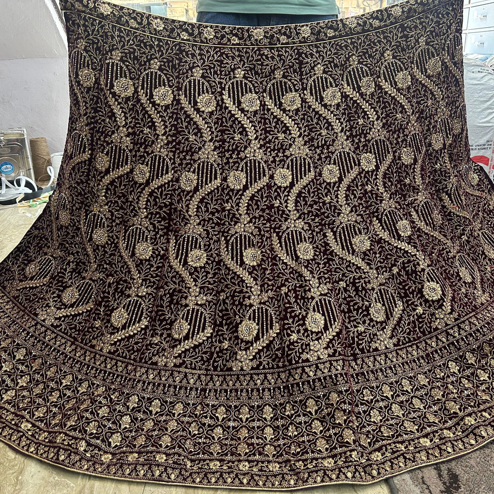 Work on fabric:VELVET LEHENGA
