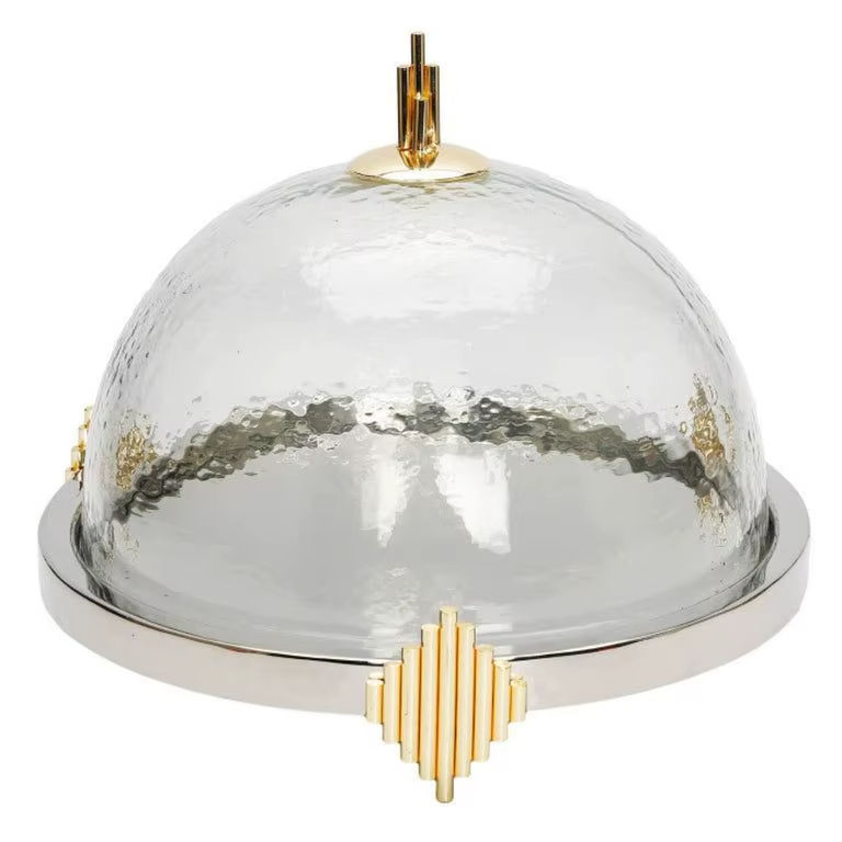 Luxurious Metal Cake Stand With Glass Dome Designed For Elegant Table Presentation And Special Occasions