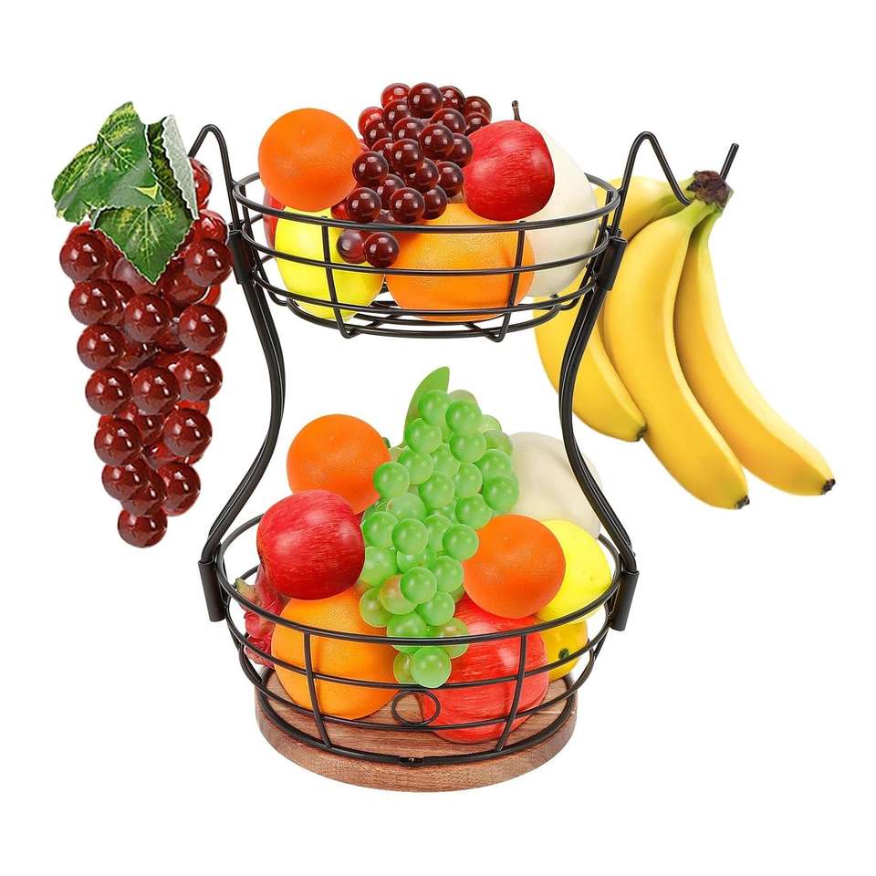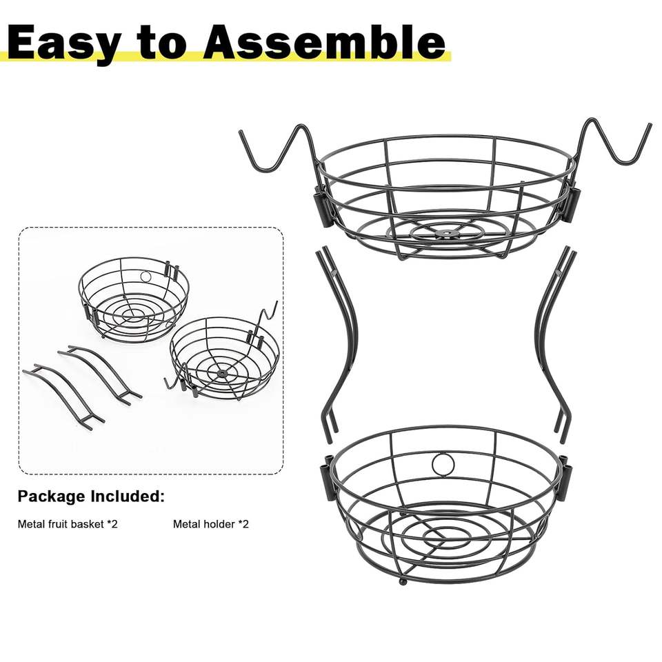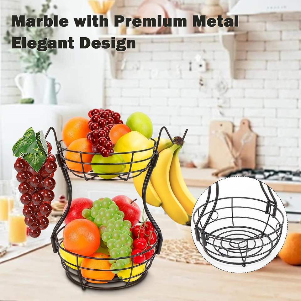 Luxurious Metal Fruit Bowl Vegetable Basket with Banana Hooks Large Capacity Wire Storage for Kitchen Countertop