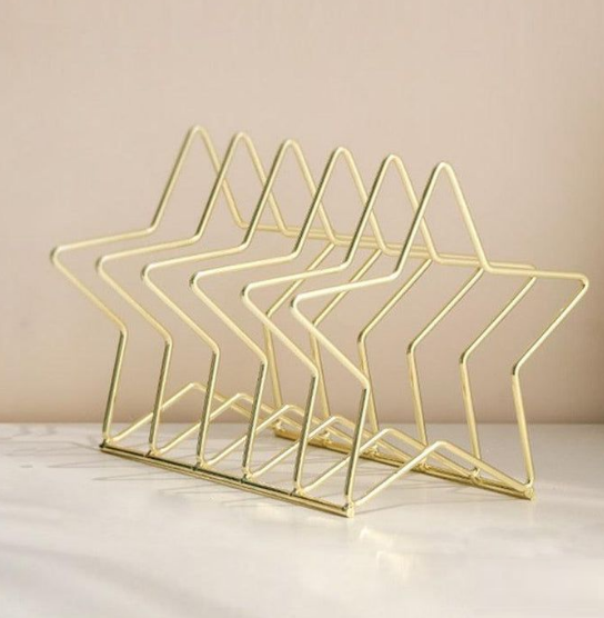 Luxurious Metal Magazine Rack Gold Star Shape Decorative Accessories Tabletop Book Cases Bench Hand Made Book Rack