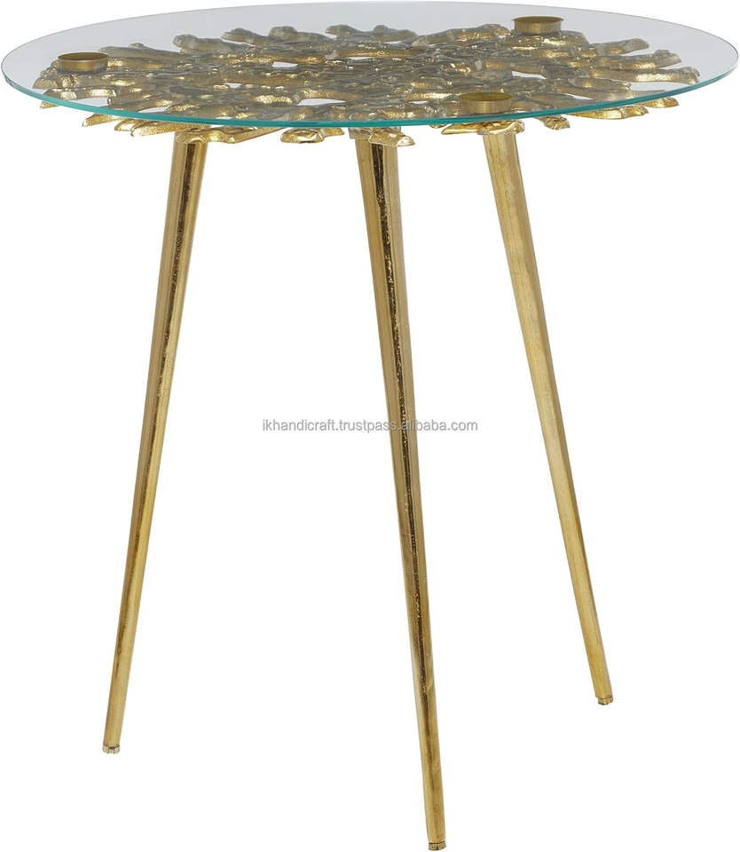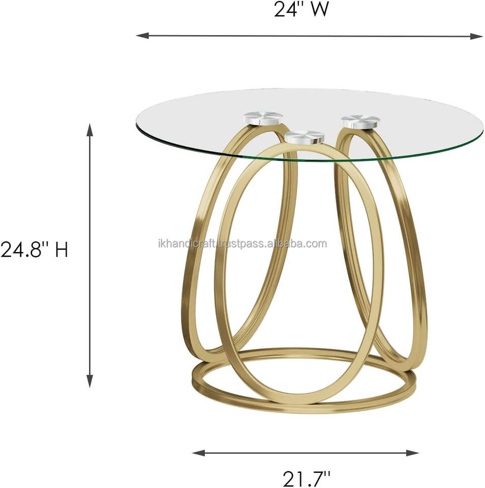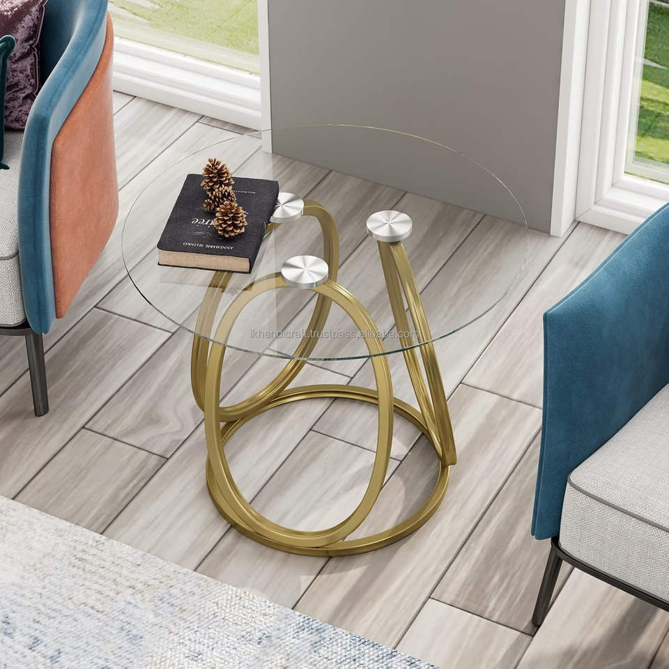 Luxurious Modern Gold End Table with Glass Top Metal Frame for Home Office-Coffee Table Side Table Nightstand Bedroom Accessory