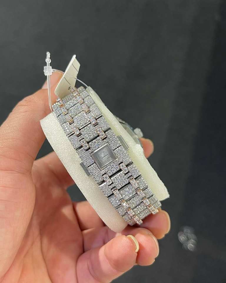 Luxurious Moissanite Diamond Studded Two Tone Watch Quartz Movement Arabic Numeral Dial Date Function Iced Out for Men and Women