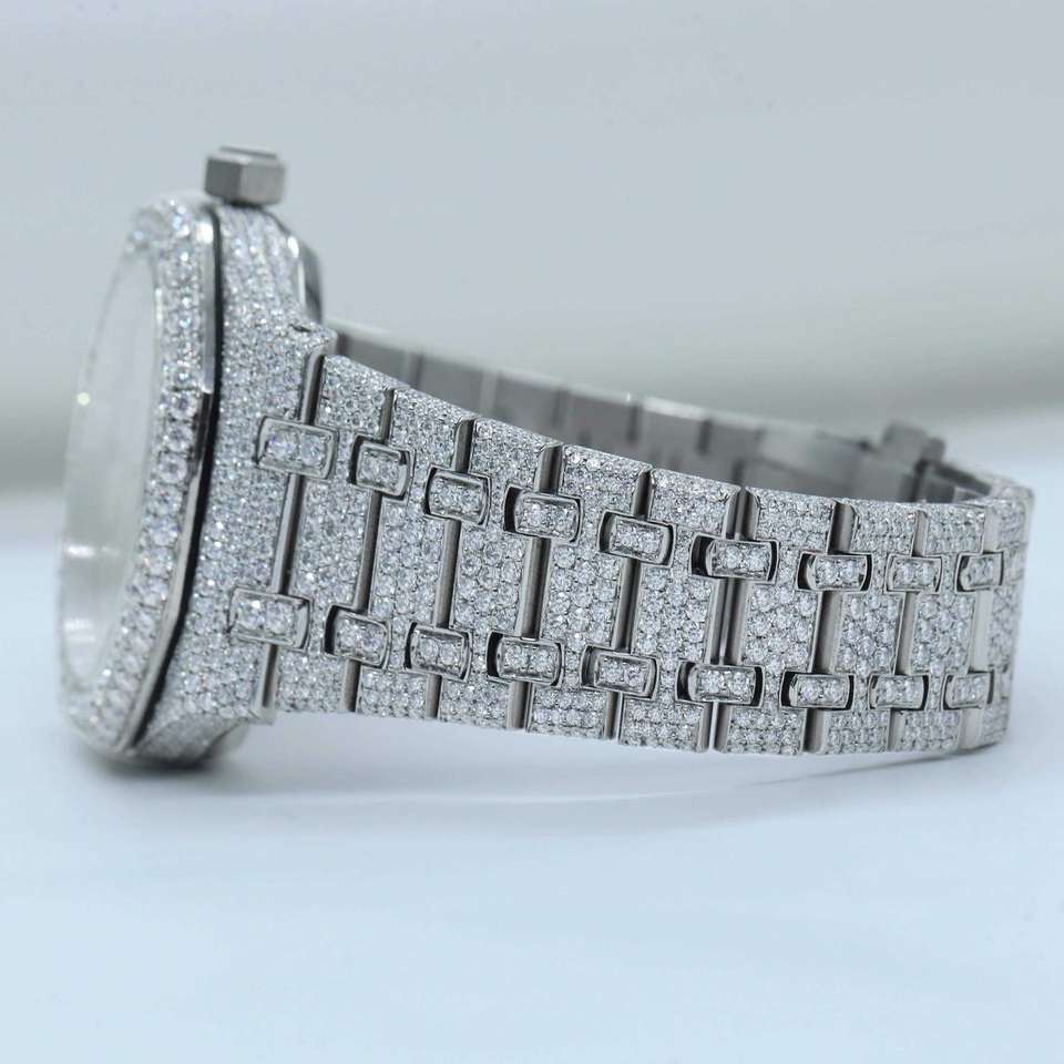 Luxurious Moissanite Diamond Studded White Watch Quartz Movement Date Function Iced Out Hip Hop Style for Men and Women