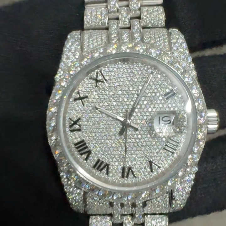 Luxurious Yellow Gold Moissanite Automatic Mechanical Watch Sapphire Dial 30M Waterproof Stainless Steel Strap Leather Strap