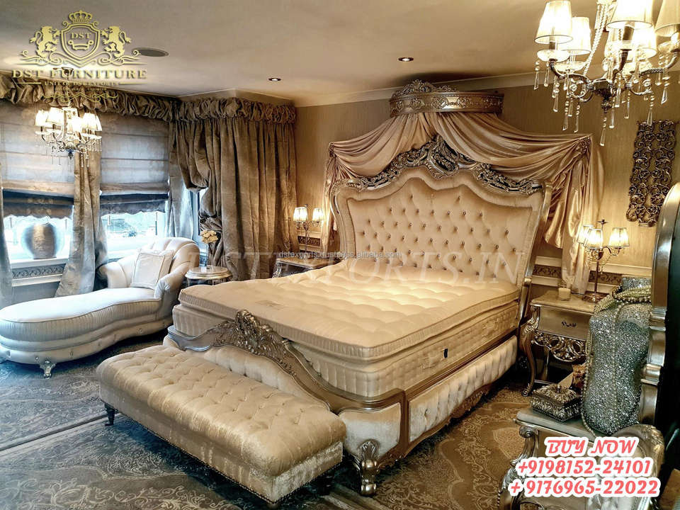 Luxurious Neo Classical Leaf Carved Bed Heavy Carved Classic Bed & Side Stool Set Buy European Crown Style Upholstered Bedroom