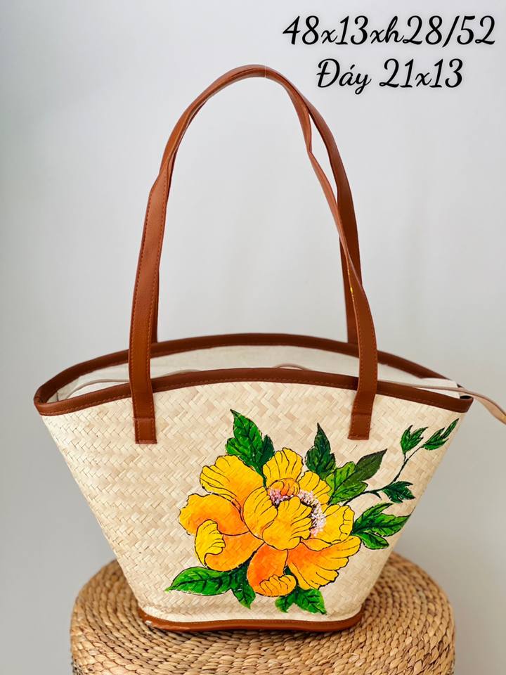 Luxurious New Model Handwoven Sedge Grass Bag Durable Eco-Friendly Two Straps Zipper Closure Featuring Flower Decoration