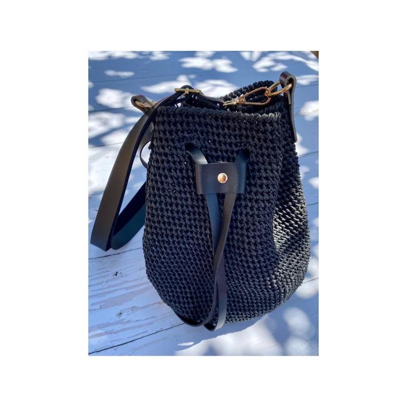 Luxurious Red Crocheted Straw Leather Bucket Bag Ladies Bucket Designer Bag