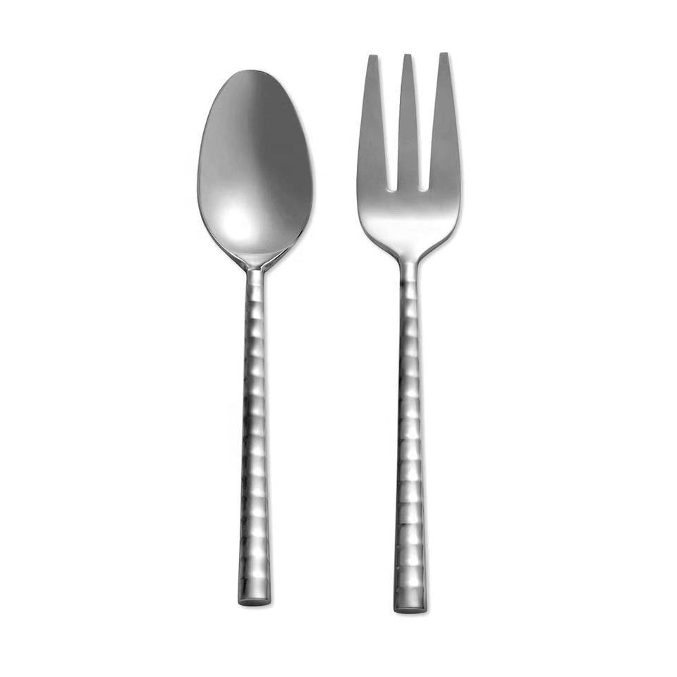 Luxurious Salad Serving Set Stainless Steel Silver Plated Ribbed Handle Design Salad Serving Set Salad Bar Serving Set