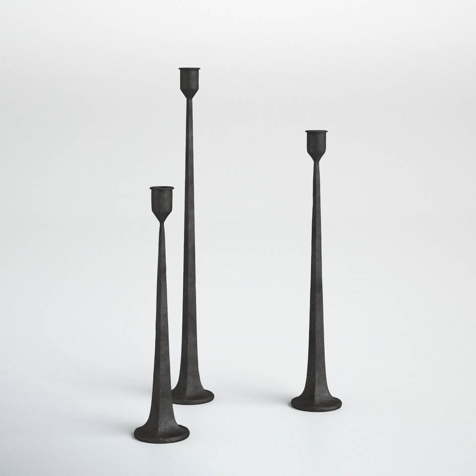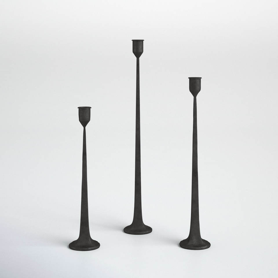 Luxurious Set of 3 Vintage Gold and Black Metal Candlestick Holders Ideal for Home and Creating a Sophisticated Candle Display