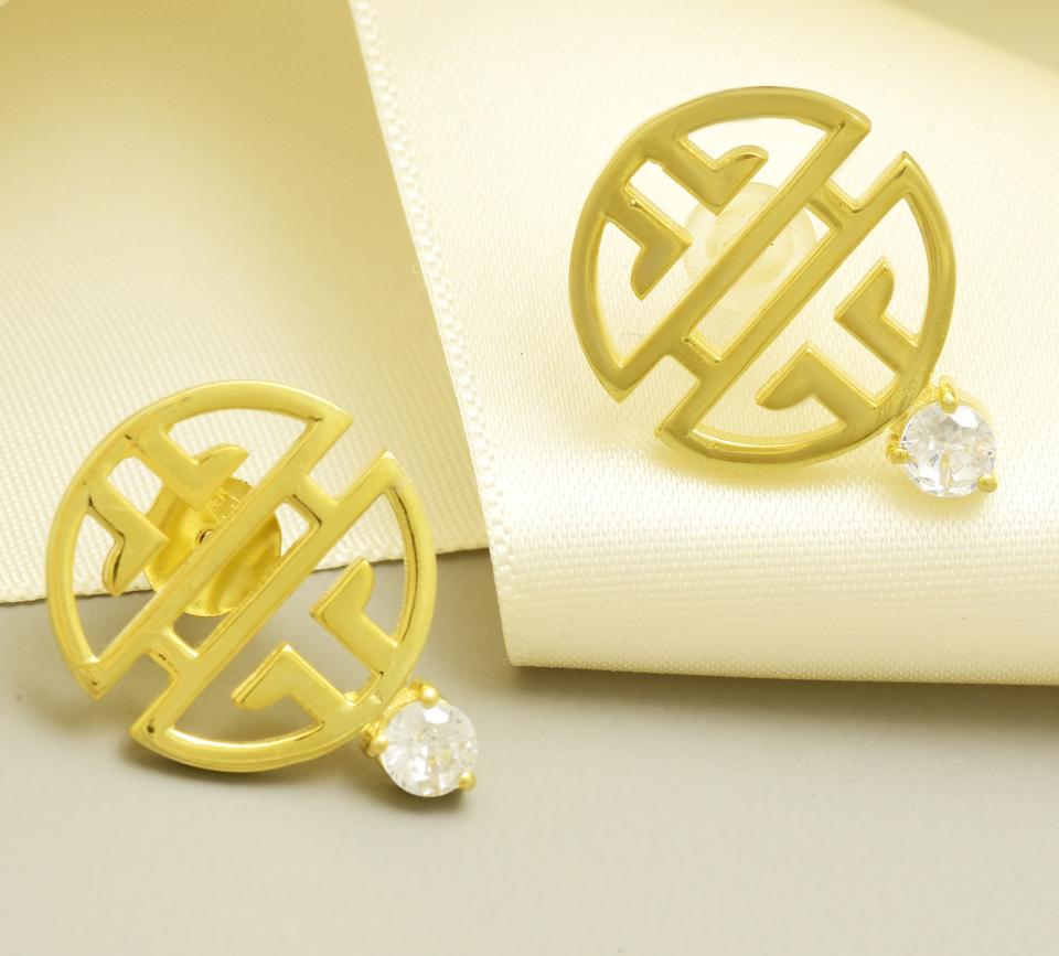 Luxurious Solid 925 Sterling Silver 18K Gold Plated Zircon Gemstone Peace Shape Stud Earrings for Women Engagement Gift Party