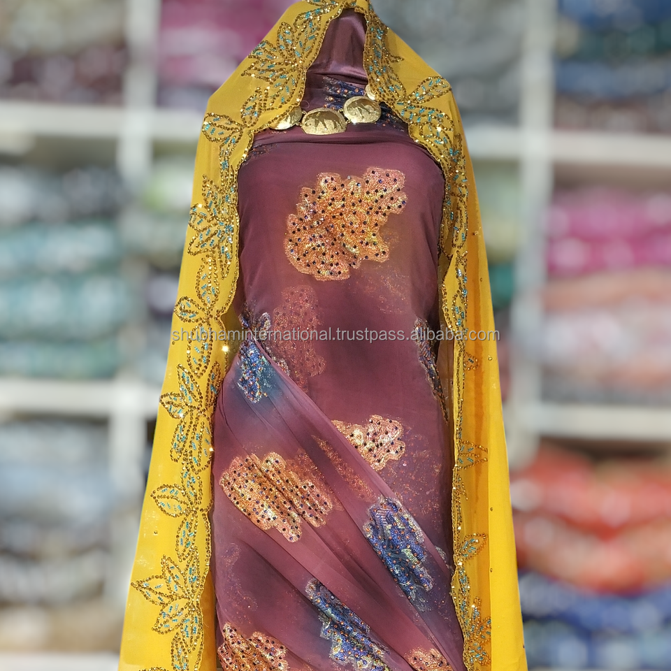 Luxurious Somali Fransawi Dirac Dress With Stunning Floral Design and Golden Stones for Special Occasions and Weddings