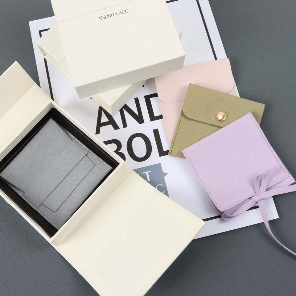 Luxurious Square Jewelry Box with Velvet Canvas and Customizable Super Fiber Sanding Storage Bag Matching Fabric Ear Cardstock