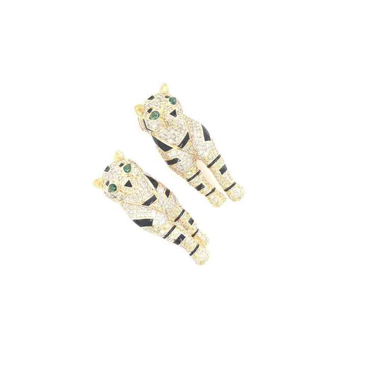 Luxurious Tiger Shape Diamond Earring with Black Enamel for Girls Party and Daily Life Use Earring for Export Fashion Jewelry