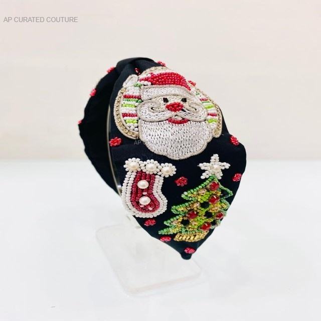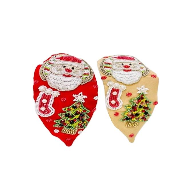 Luxurious Traditional Red Santa Turban Style Beads and Pearls Hand Embellished Christmas Theme Headpiece for Girls and Women