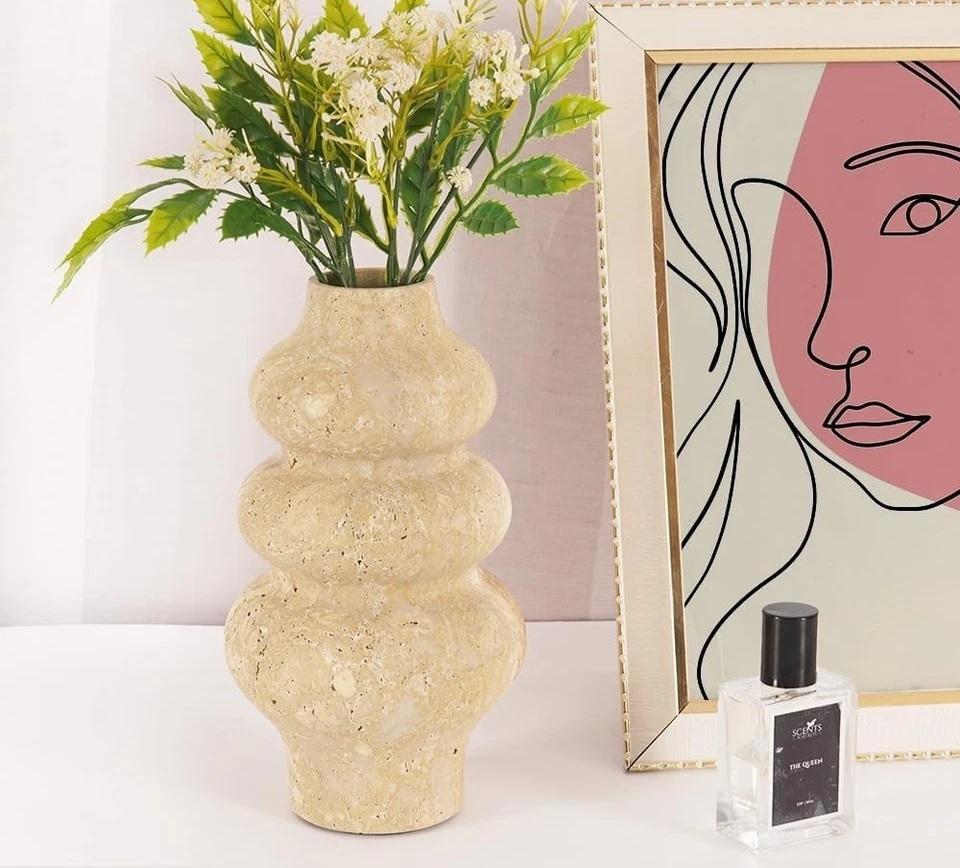 Luxurious Travertine Stone Bubble Vase Handcrafted Sculptural Design Modern Centerpiece for Elegant Home and Floral Decor