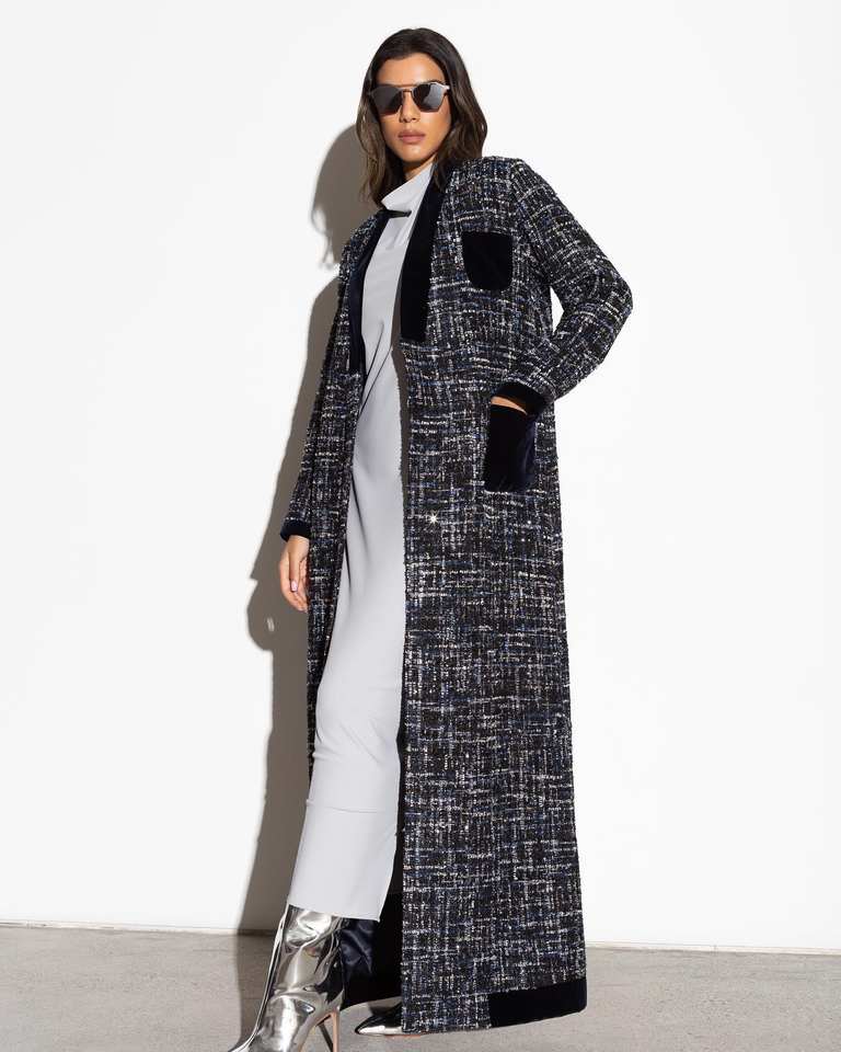 Luxurious Vintage Turkish Winter Coat in Satin Woolen Fabric Straight Silhouette for Style and Comfort at Parties