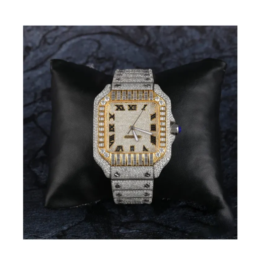 Luxurious Two-Tone Rose Gold Stainless Steel VVS Moissanite Mossanite Hip Hop Iced Out Watch Men