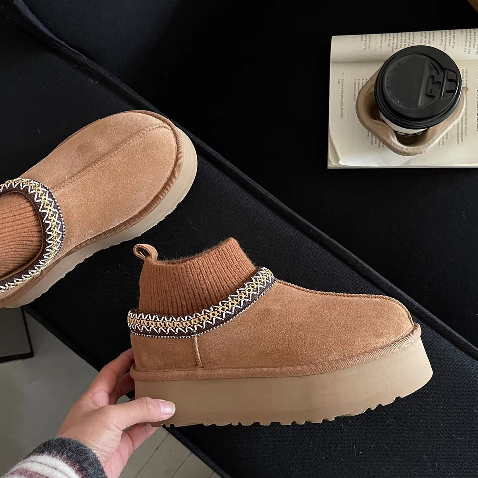 Luxurious Designer's Super Good-looking Ethnic Style Color-blocking Woven Sock Top Warm Sheepskin Waterproof Winter